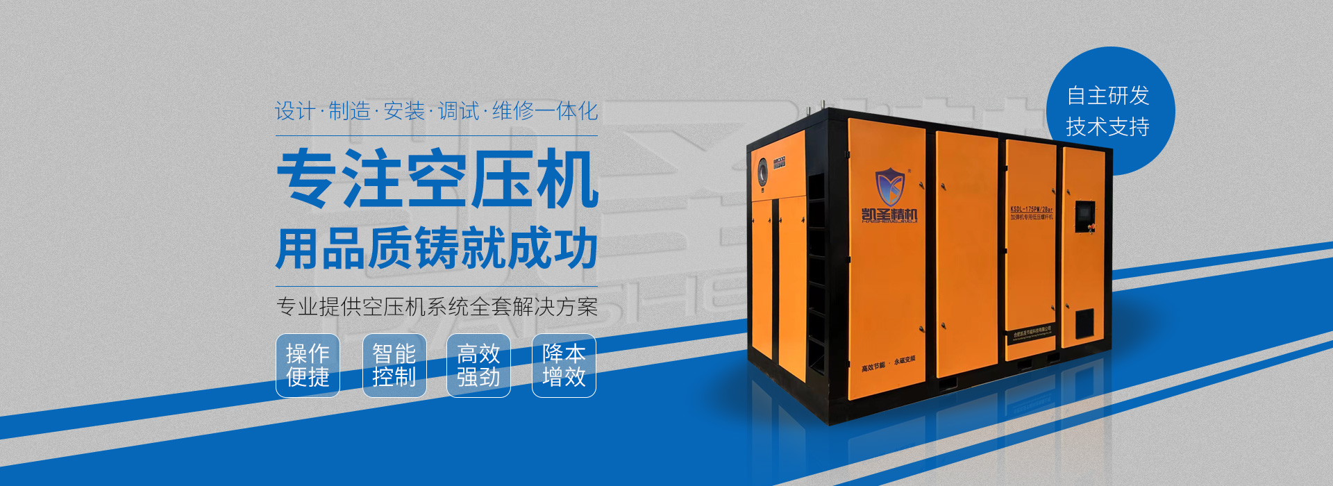合肥凱圣節(jié)能科技有限公司是從事永磁變頻螺桿壓縮機系統(tǒng)的設計、制造、安裝、調試、維修與一體的公司。 在多年的螺桿空壓機研發(fā)與推廣歷程里,凱圣聚集和培養(yǎng)了大量壓縮機技術設計和管理人員,迅速發(fā)展成為集研究、生產、銷售、服務等環(huán)節(jié)為一體、嚴格按照標準執(zhí)行的企業(yè),公司成立開始,即以滿足客戶的實際需求為己任,大力開拓國內外節(jié)能型空壓機市場,并始終保持創(chuàng)新精神,全力研發(fā)更為節(jié)能的螺桿式空壓機,努力站在空壓機節(jié)能領域的排頭位置。 應用范圍:公司產品廣泛應用于機械、輕工、紡織、食品、石油、化工、冶金、礦山、電力、城建、醫(yī)學研究和科研等各行業(yè)中,將為節(jié)約能源做出巨大貢獻。公司秉承“信譽至上,...